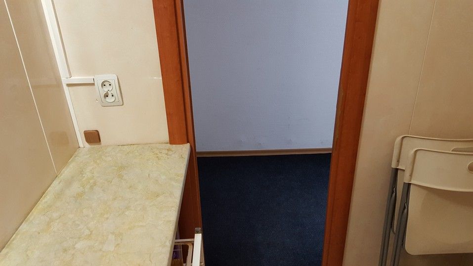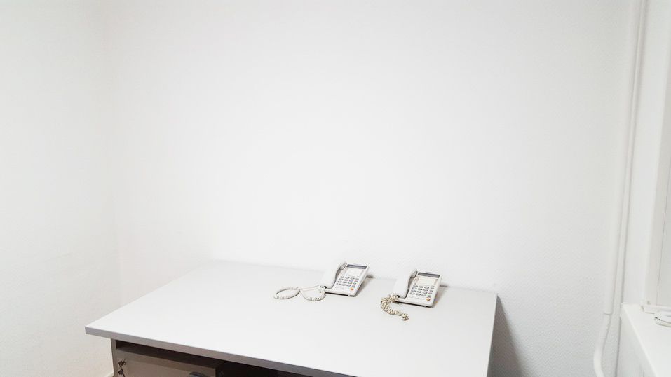 Комната для переговоров находится в дальнем конце офиса, напротив входной двери, что позволяет приглашать гостей не проходя сквозь весь офис. Рядом располагается санузел и помещение для ланча, где сотрудники могут готовить чай, кофе, холодные напитки и легкие закуски. В переговорной размещен один небольшой стол и несколько шкафов для документов и образцов продукции. Комната имеет выход на балкон-лоджию, в котором предусмотрена дверь на улицу (аварийный выход). Переговорную можно легко переоборудовать в обычную офисную комнату для 2-3 сотрудников.