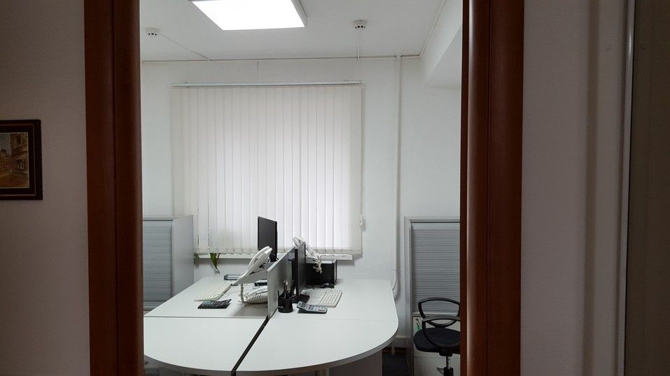Офис общей площадью 73,6 кв. м.: 4 отдельный комнаты, санузел, небольшое помещение для приготовления пищи и 2 застекленных лоджии. Офис оборудован тревожной и пожарной сигнализацией в каждой комнате (в соответствии с ГОСТом), необходимым количеством огнетушителей и тревожной кнопкой с подключением к системе Гольфстрим. В офисе проведена дополнительная разводка электропитания в настенных коробках, разводка телефонных и сетевых линий) с соответствующим розетками у каждого рабочего места.